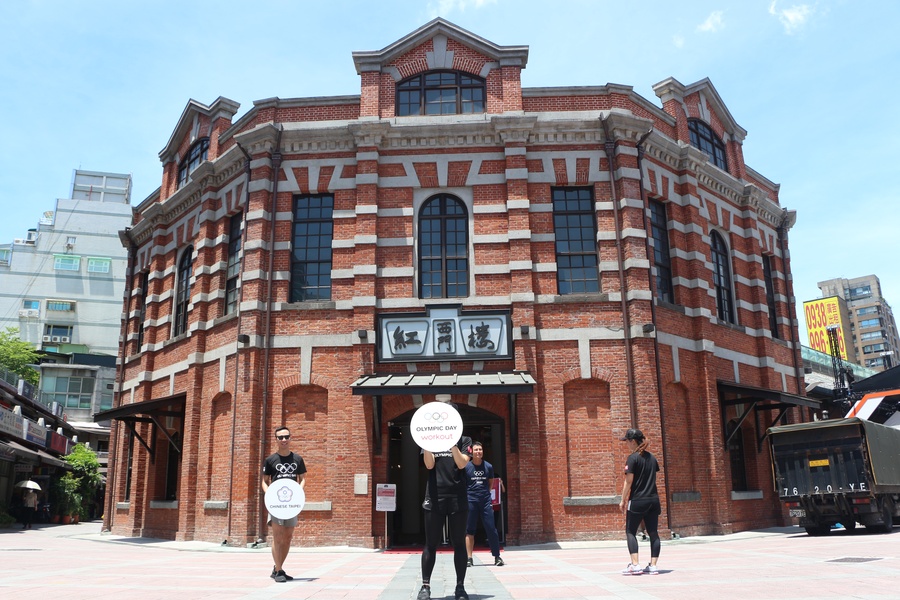 Taipei, June 23, 2020: To celebrate Olympic Day 2020, Chinese Taipei Olympic Committee (CTOC) organised a flash event in front of the historical and iconic building - Red House Theater in Ximending, Taipei city.