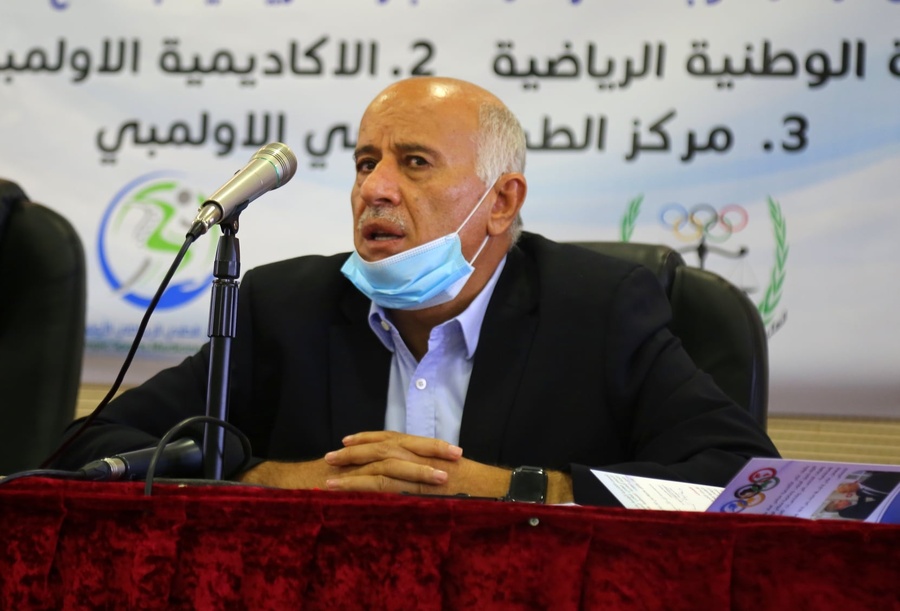 Ramallah, Palestine, July 21, 2020: The President of the Palestine Olympic Committee, Maj. Gen. Jibril Rajoub, opened National Olympic Week on Monday, July 20.