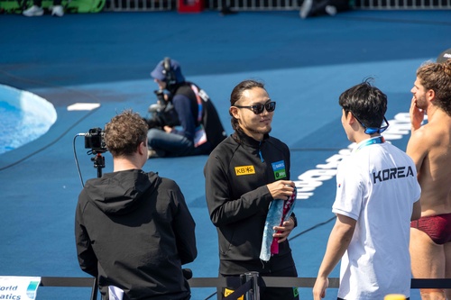 According to International Swimming Federation rules, swimmers cannot use wet suits as this can artificially increase speed or endurance.