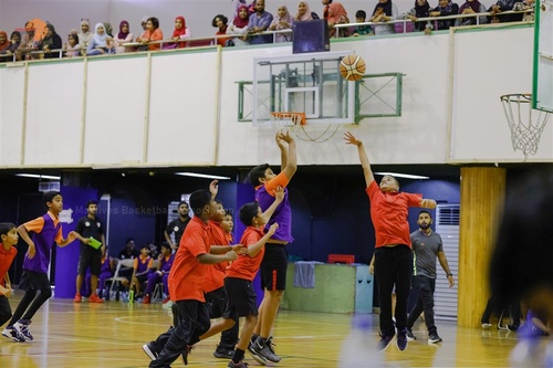 Teams keep control by bouncing/dribbling and throwing a ball to each other and score by shooting through a 10 feet (3 m) high basket under organized rules.